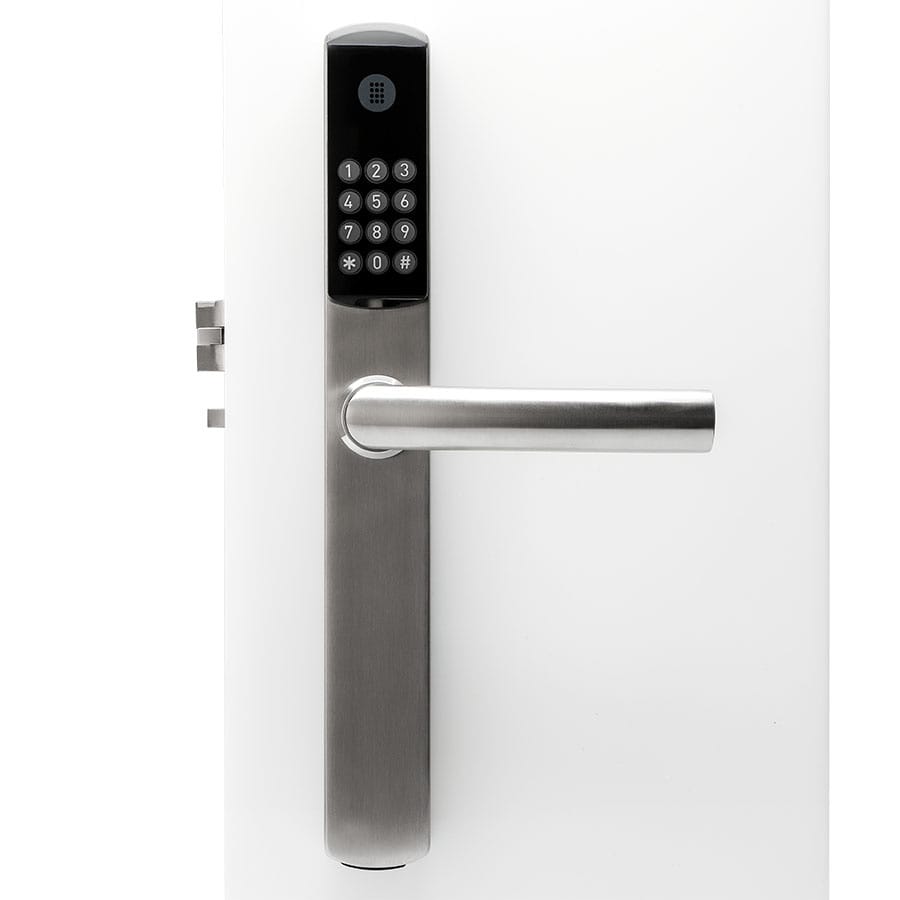 Integração perfeita do design das fechaduras com ambientes de alto padrão, reforçando a imagem de sofisticação e cuidado com detalhes.